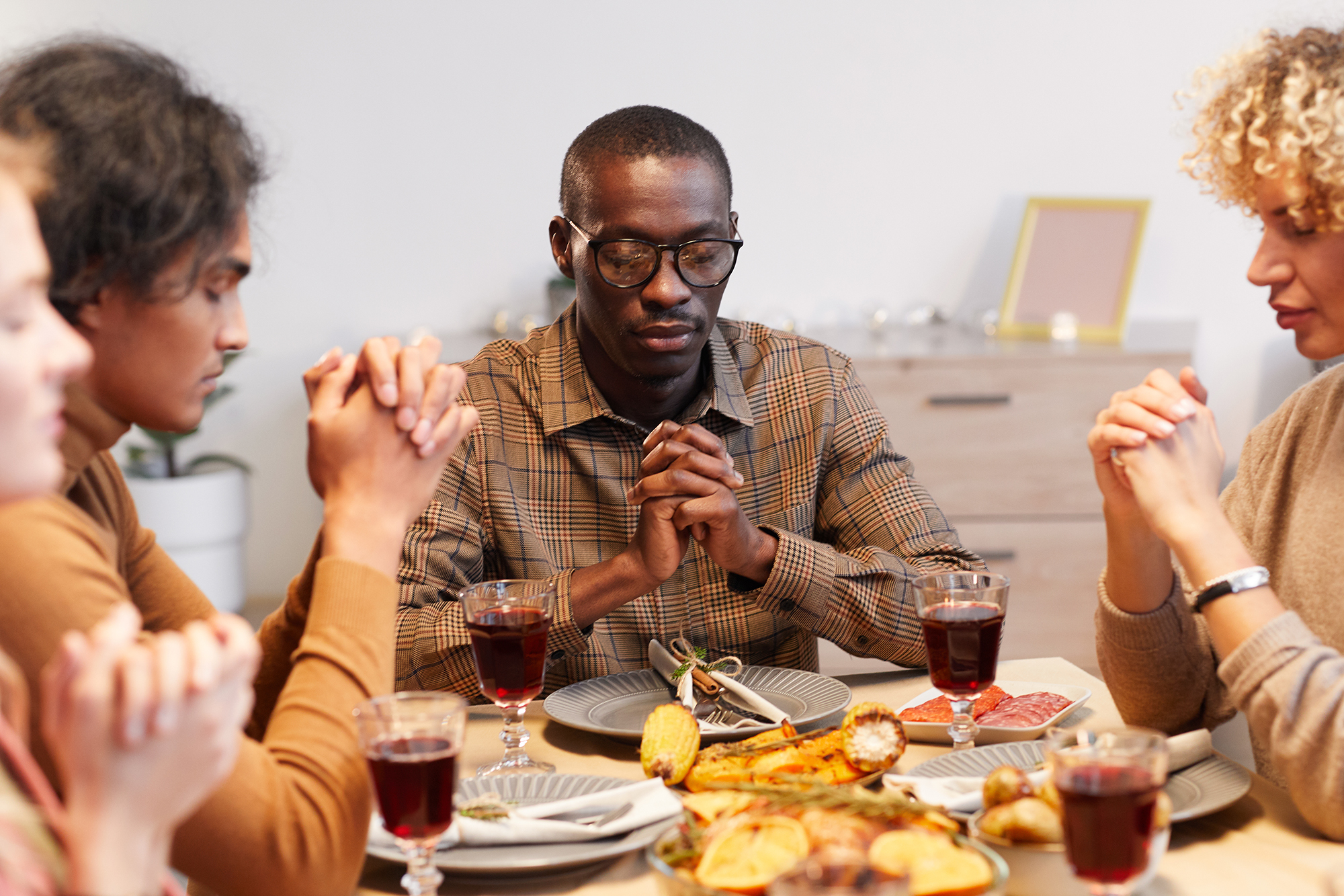 People Praying Quietly at Dinner Published January 29, 2021 at 2000 × 1333 in People Praying Quietly at Dinner Multi-ethnic group of modern adult people praying with eyes closed while enjoying Thanksgiving dinner with friends and family ← Previous Next →